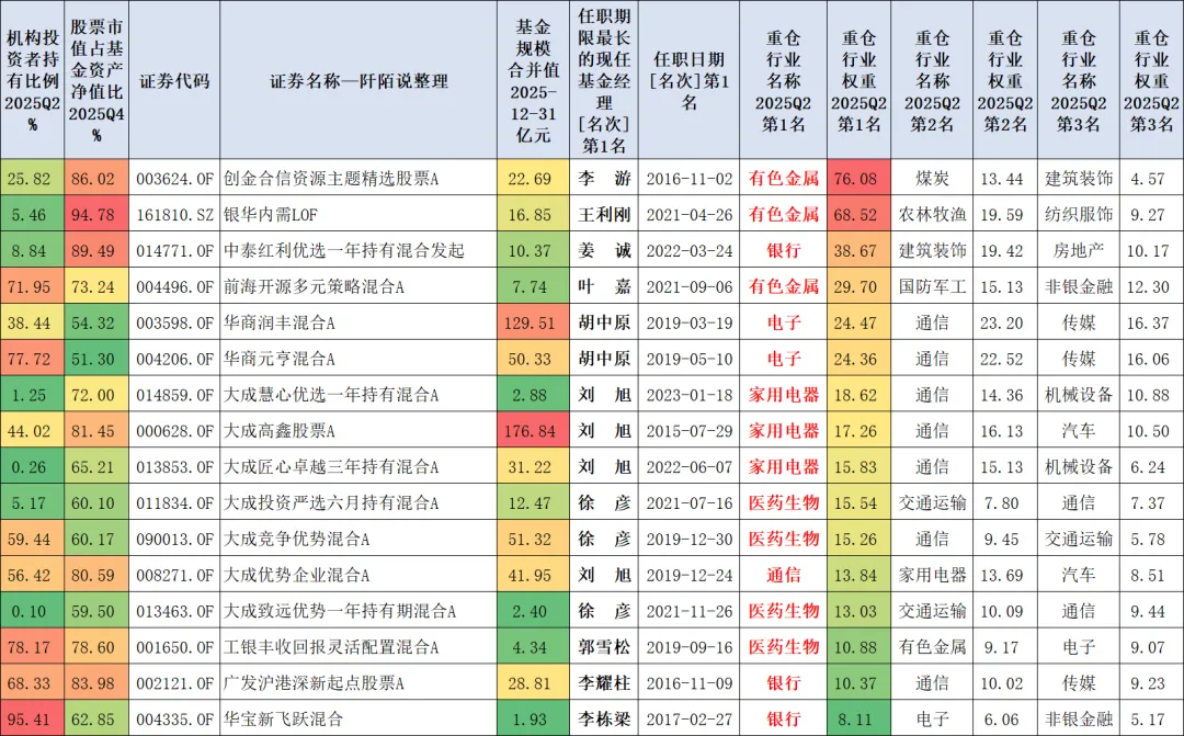 创金合信资源主题精选股票A是一只资源行业主题基金,数据显示2025年四季度李游新买入了中国铝业、中孚实业、江西铜业。这里声明一下,提及重仓股不代表推荐,只是想看清楚基金经理的操作,个股有风险,抄作业须谨慎。