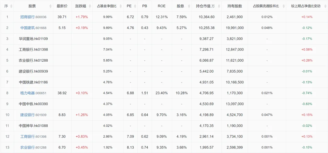 大家应该都比较熟悉,其在管的中泰红利优选一年持有混合发起2025Q4重仓股及部分持仓展示如下。