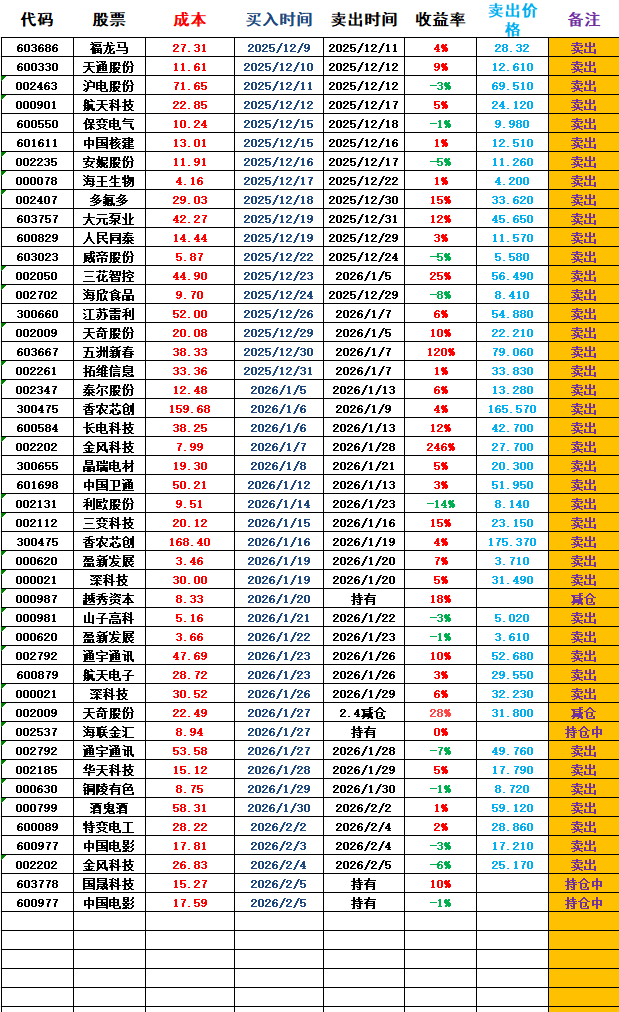 天奇股份:周四这波调整来得猝不及防,早盘一度被按到地板附近,此前连续突破、不断创新高,叠加人形机器人核心属性、相关具身大模型登上春晚的重磅催化,一直对它保持较高期待。不过这波急跌里盘中接力依旧不错,早盘被压到低位后直接被接力翘板,承接力度可见一斑,接下来的走势就尤为关键。此前已经做过减法,仓位与节奏更从容,若今日能在10日均线位置有效企稳,反倒是个不错的上车几会,重点观察10日均线支撑与板块回流力度。