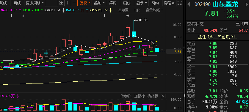 昨日低开低走至收盘跌幅6.47%,核心是主力资金持续流出、前期获利盘集中兑现、油气设备板块走弱、技术面破位与大盘情绪共振,叠加业绩与筹码结构压力,今日在盘中也跟大家告知要是修复不上来就直接落袋了,现在情绪不稳定,个股多数走下坡,我们先直接把墨龙兑现了确保自己的获利先,后续有合适的在接回来就好了。