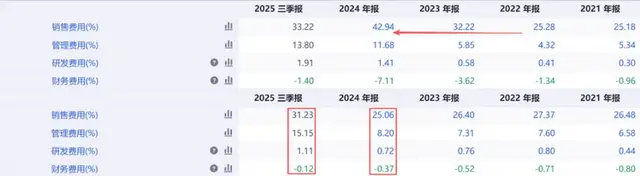 让酒鬼酒雪上加霜的是其高得惊人的销售费用率,该指标从2022年的25.28%暴涨至2024年的42.94%,2025年虽稍有回落但仍然处于较高水平。尤其是在营收近乎腰斩的背景下,高昂的营销开支吞噬了所有毛利,最终导致净利率跌至-1.29%,由盈转亏。背后的原因也很直观,酒鬼酒为了维持渠道动销和品牌声浪,不得不持续投入渠道返利、广告、品鉴会等,但收效甚微,反而陷入越卖越亏的恶性循环。