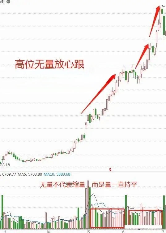 股价在上涨途中出现上涨顺势量,则为健康的多头走势,手中有股的可继续持股。