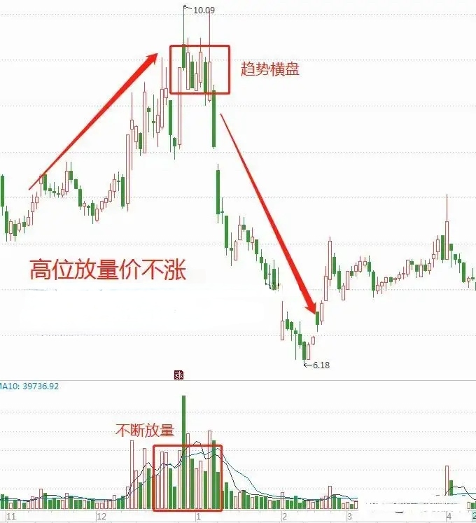 1)高位区后,出现下跌逆势量,往往代表主力出货;