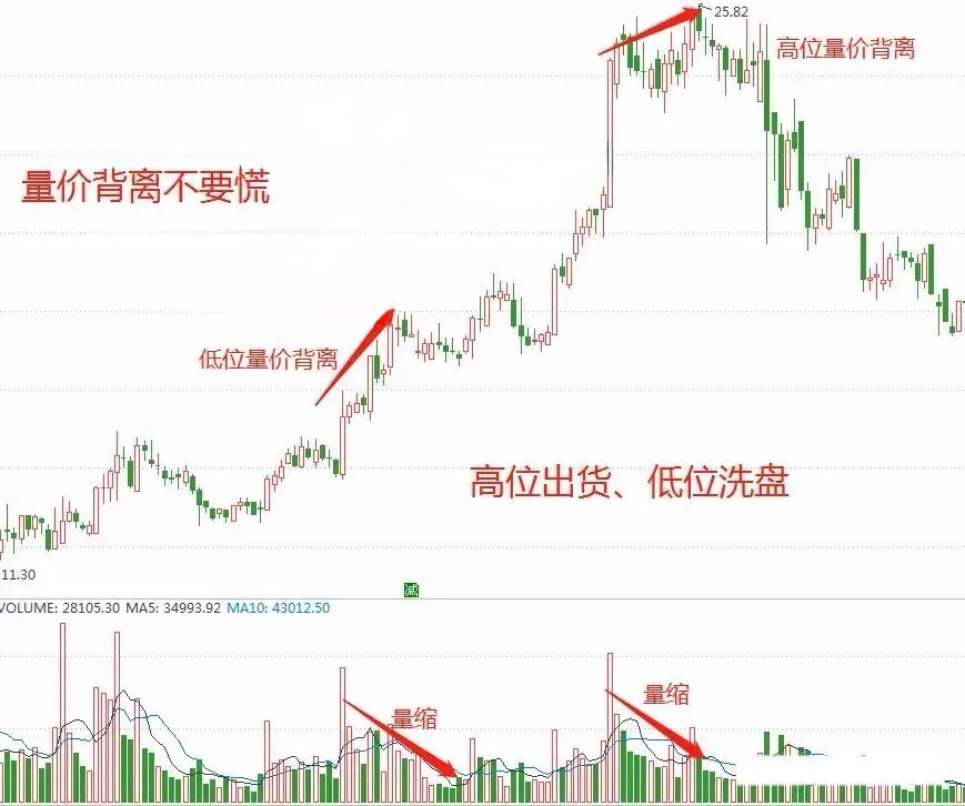 量价背离有四种:价涨量缩、价跌量增、价平量增、价平量减,不管哪种,一旦出现通常都是股价转变的信号。