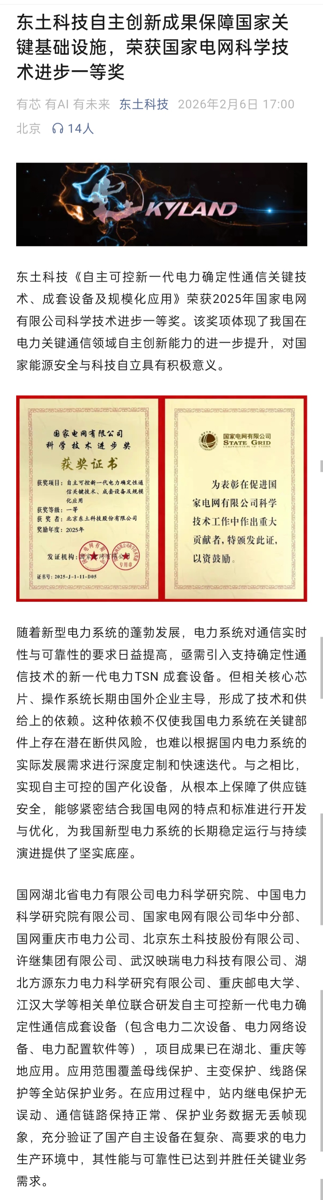 国网湖北省电力有限公司电力科学研究院、中国电力科学研究院有限公司、国家电网有限公司华中分部、国网重庆市电力公司、北京东土科技股份有限公司、许继集团有限公司、武汉映瑞电力科技有限公司、湖北方源东力电力科学研究有限公司、重庆邮电大学、江汉大学等相关单位联合研发自主可控新一代电力确定性通信成套设备(包含电力二次设备、电力网络设备、电力配置软件等),项目成果已在湖北、重庆等地应用。