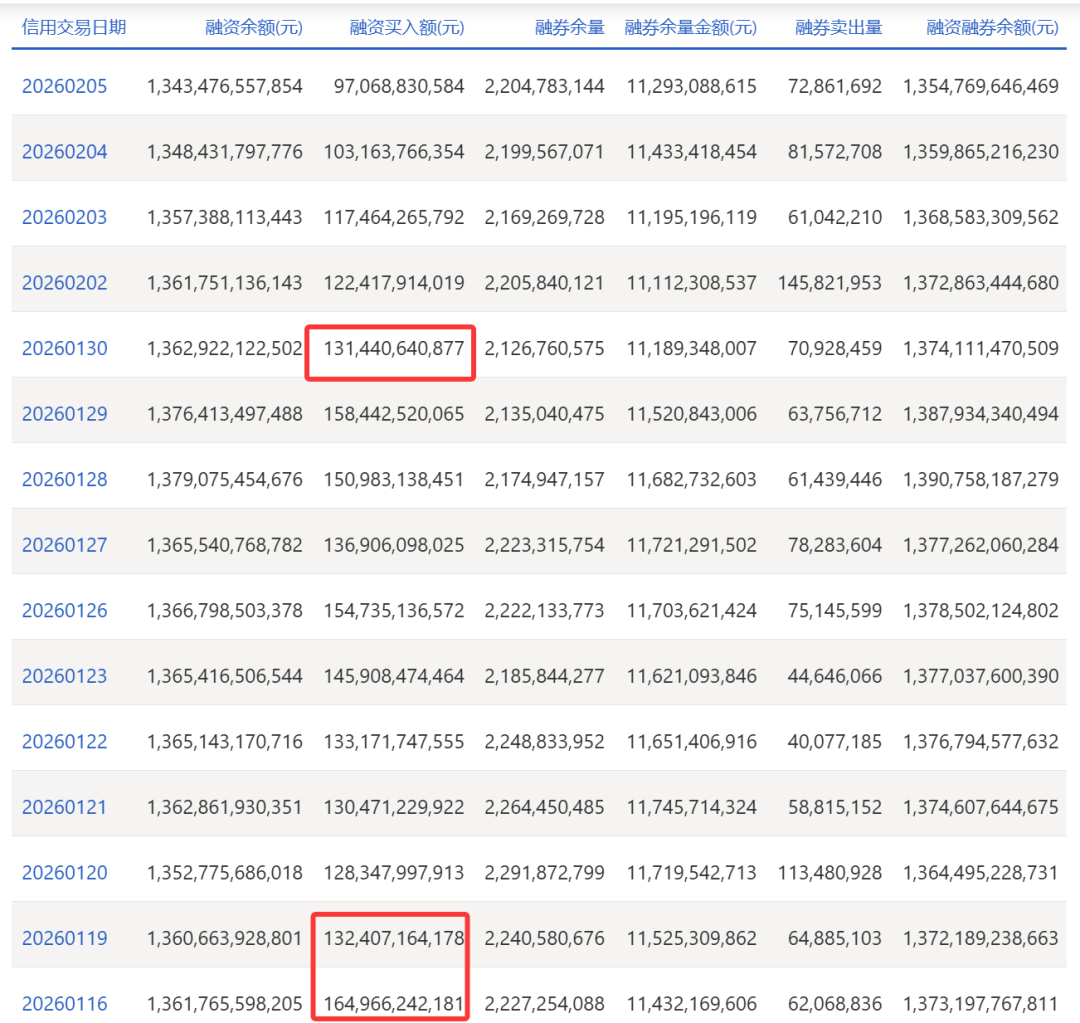 上交所数据显示,自1月19日以来,融资买入额显著“降温”。截至1月30日,融资买入额从1月16日的1649.7亿元降至1314.4亿元,降幅超20%。