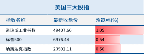 隔夜,美股三大指数全线收涨。