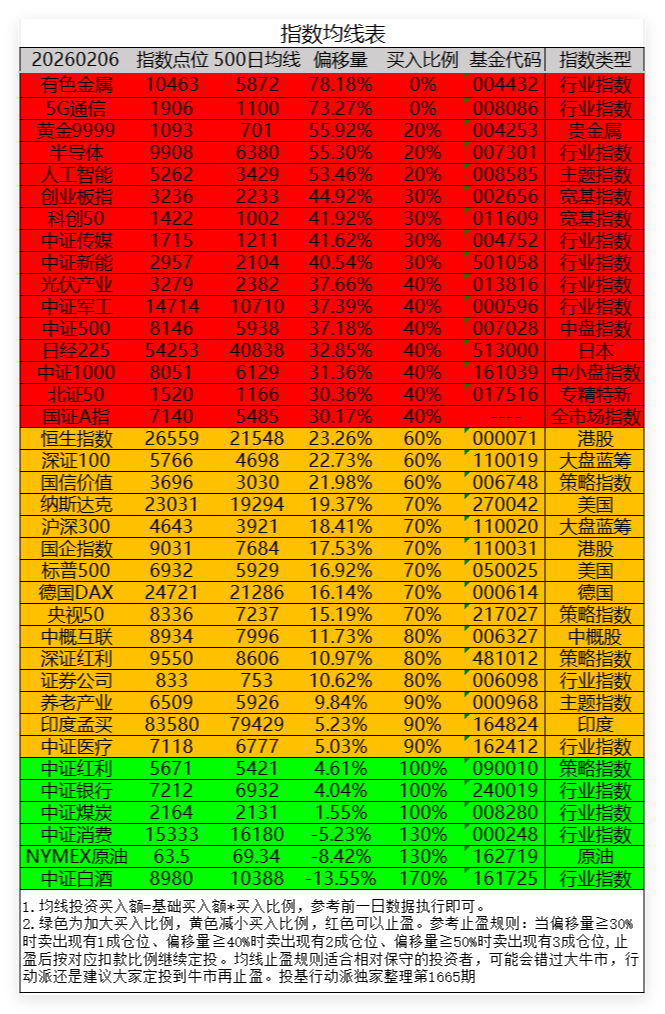 截至2026年2月6日,有6个指数位于均线表绿域,均线表绿化率为16.22%,和前一周相比略有降低,春节前均线表格局应该没有大的变化了。
