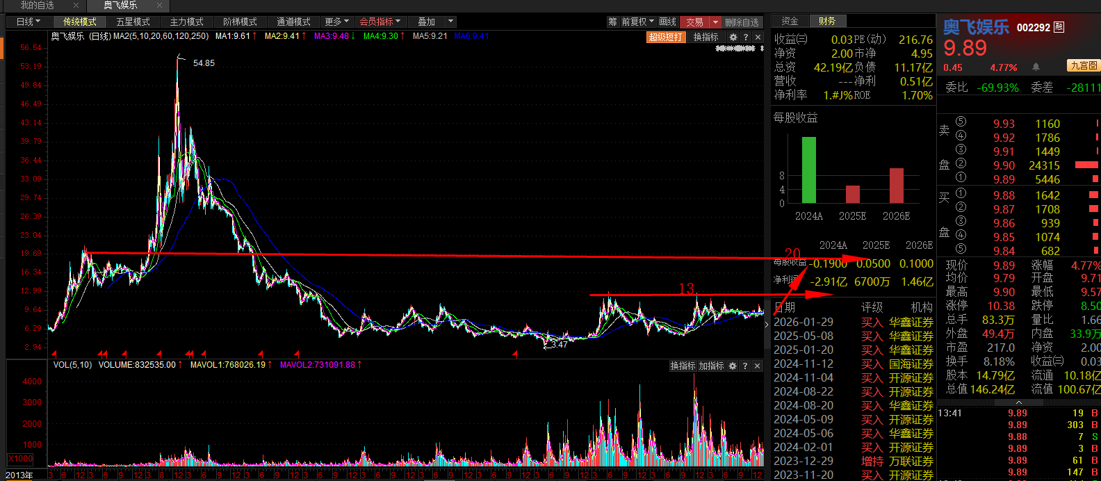 今日股票池:再次纳入奥飞娱乐:002292 该票目标价格:20元!!春季行情预期突破13元,进入新价格区域...这票跟我贴文长时间的朋友,大家都知道我对这票的观点和预期!!一直,从来,从来没改变过!只是今天再次纳入股票池了!!