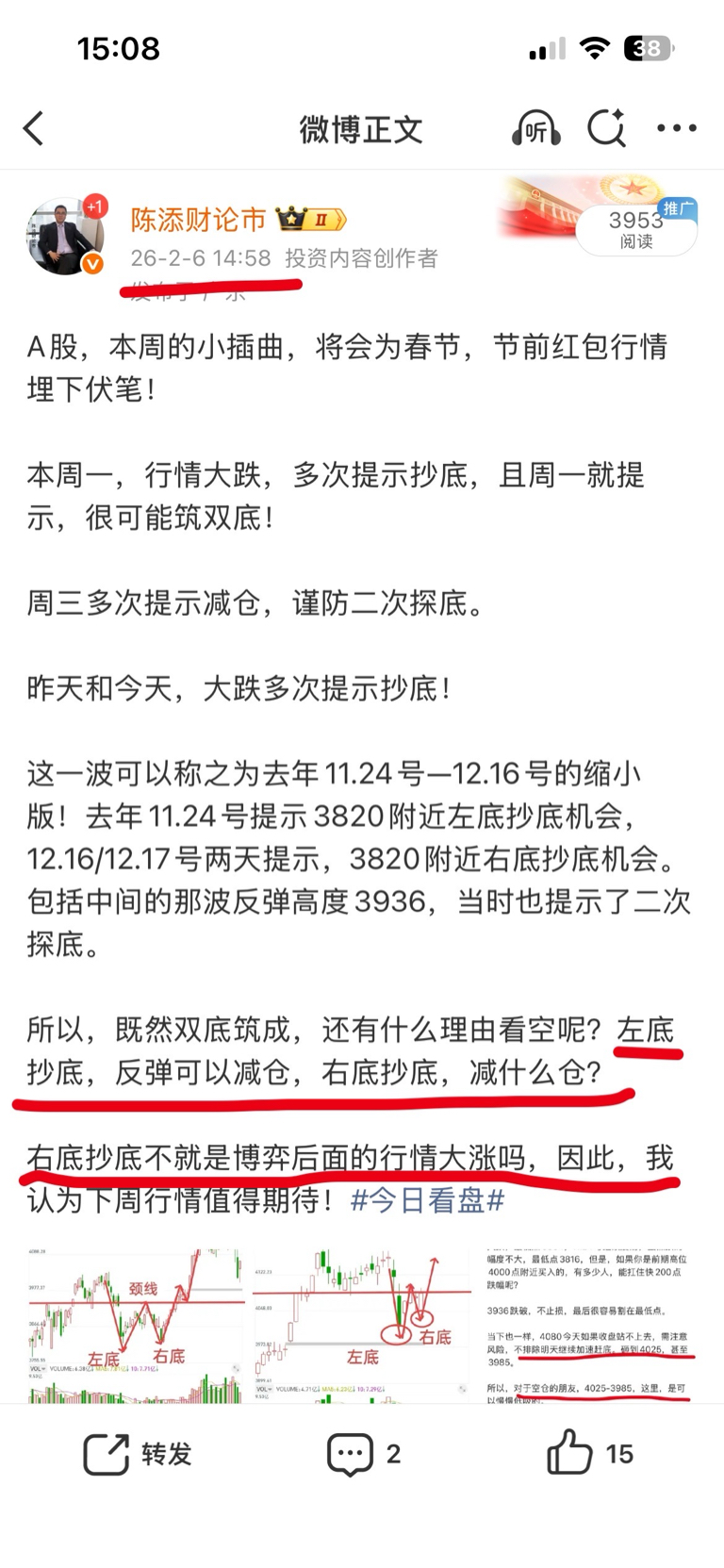 然后上周一跌破前顶4080,加速下跌,一般跌破前顶加速下跌,很容易做双底,去年11.21-12.16就是这样。