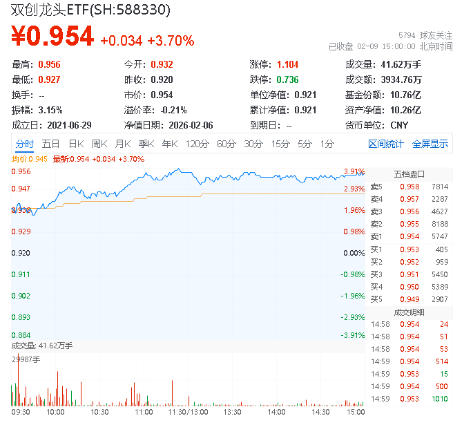 热门ETF方面,双创龙头ETF场内价格上涨3.59%,成交额达3641.54万元。