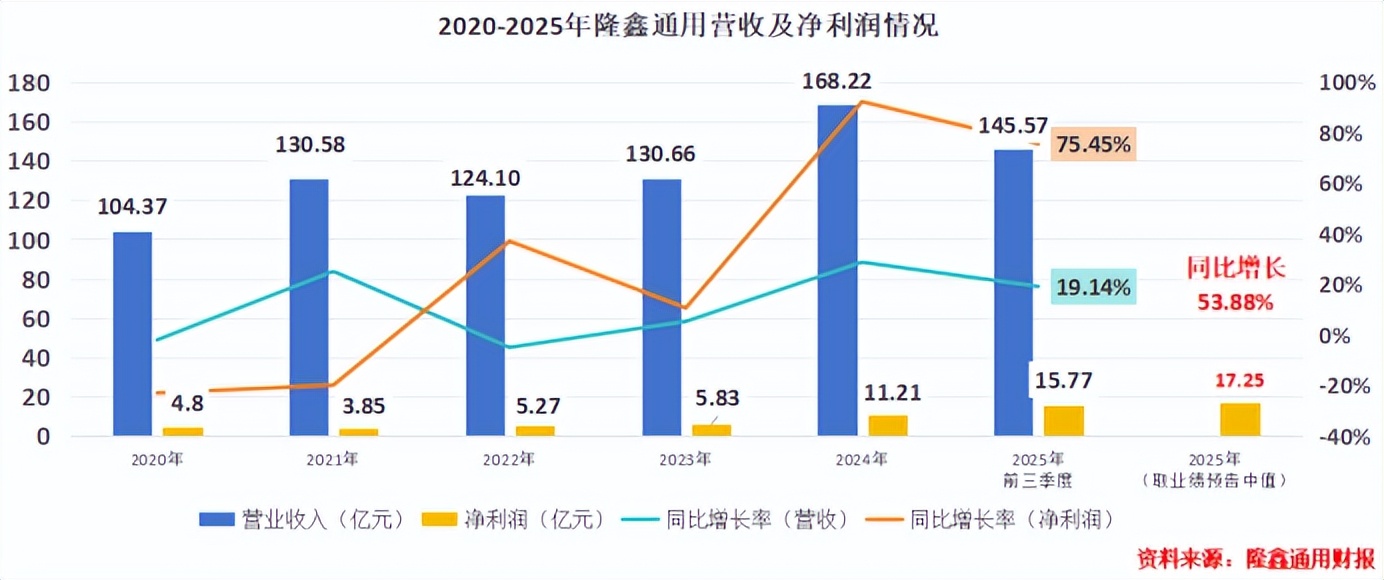 而在 2026 年 1 月 17 日发布的业绩预告中,隆鑫通用更是给市场带来了惊喜。预计 2025 年全年归母净利润在 16.5 - 18 亿元之间,若取中值计算,达到了 17.25 亿元,同比增长 53.88% 。这意味着,相较于 2024 年,公司净利润净增了 6 亿元,展现出强大的盈利能力与增长潜力。