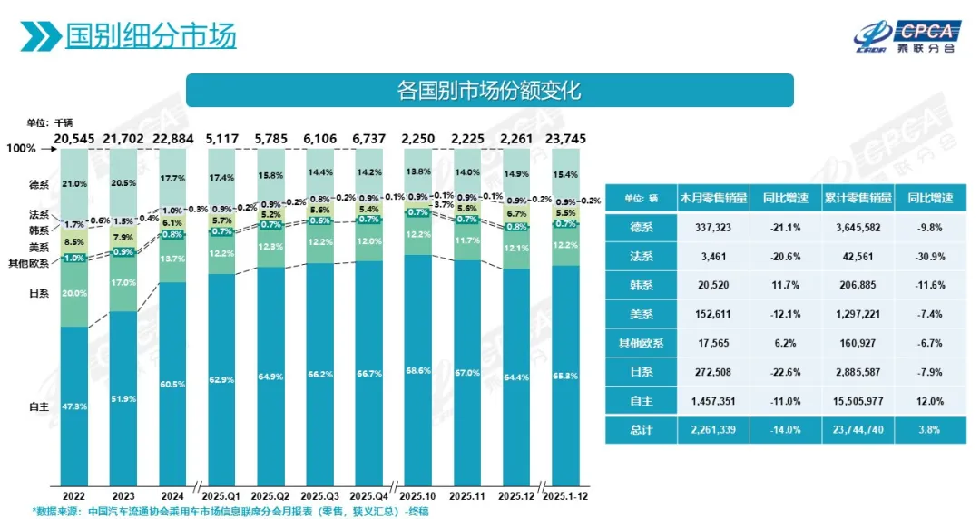 流通协会乘联分会数据显示,2025年豪华品牌市场份额仅为10.5%,同比下降1.5个百分点。该数据还包含了中国新能源豪华品牌。