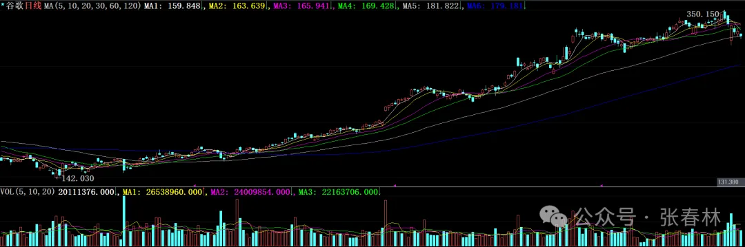 然后就是AI应用,2026年有可能是AI应用的大年,看看美股市场上谷歌的股价表现就知道了,谷歌是AI应用的代表,英伟达是AI芯片的代表,最近四个月,英伟达进入滞涨,而谷歌则一马当先,对比一下: