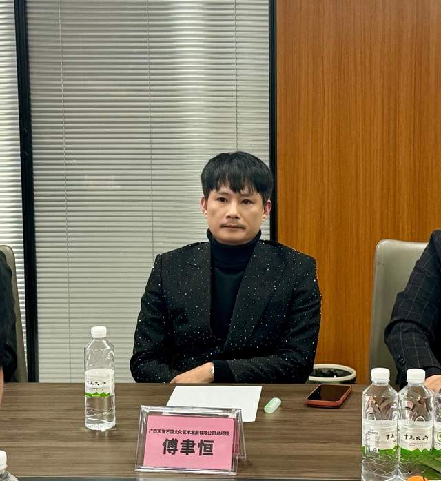 交流会上,天誉艺盟公司董事长傅聿恒对陈军会长一行的到来表示热烈欢迎,并详细介绍了企业发展历程与经营规划。天誉艺盟始创于2010年,由广西华夏盛世文化集团、广西艺盟文化投资有限公司联合出资创立,历经15年深耕发展,已成长为立足广西、辐射全国、布局海外的综合性文化服务企业,旗下拥有广西艺盟文化传媒、珠海艺盟文化传媒、杭州艺盟文化传媒等多家子公司,并于2024年在越南河内设立海外子公司,正式迈入国际化发展新阶段。