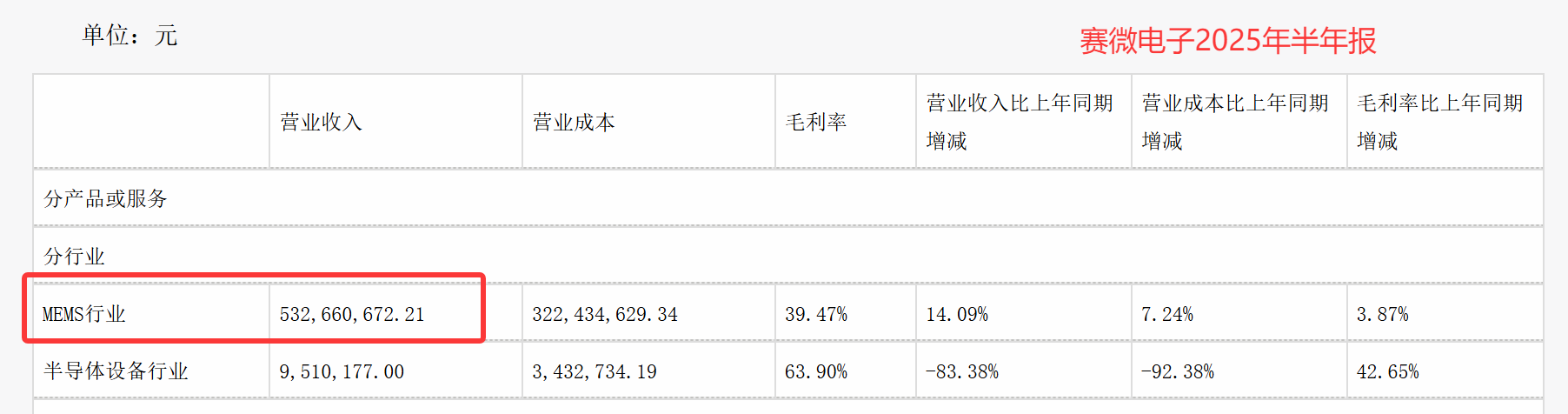 MEMS芯片被誉为“微型智能终端的核心”,广泛应用于汽车电子、消费电子、物联网、医疗设备等多个高景气领域,是半导体产业中极具发展潜力的细分赛道。业绩数据显示,2025年上半年,赛微电子MEMS业务实现营收5.33亿元,占公司总营收的比重高达93.43%,核心业务的主导地位极为稳固,彰显了公司在MEMS赛道的深耕力度和核心竞争力。
