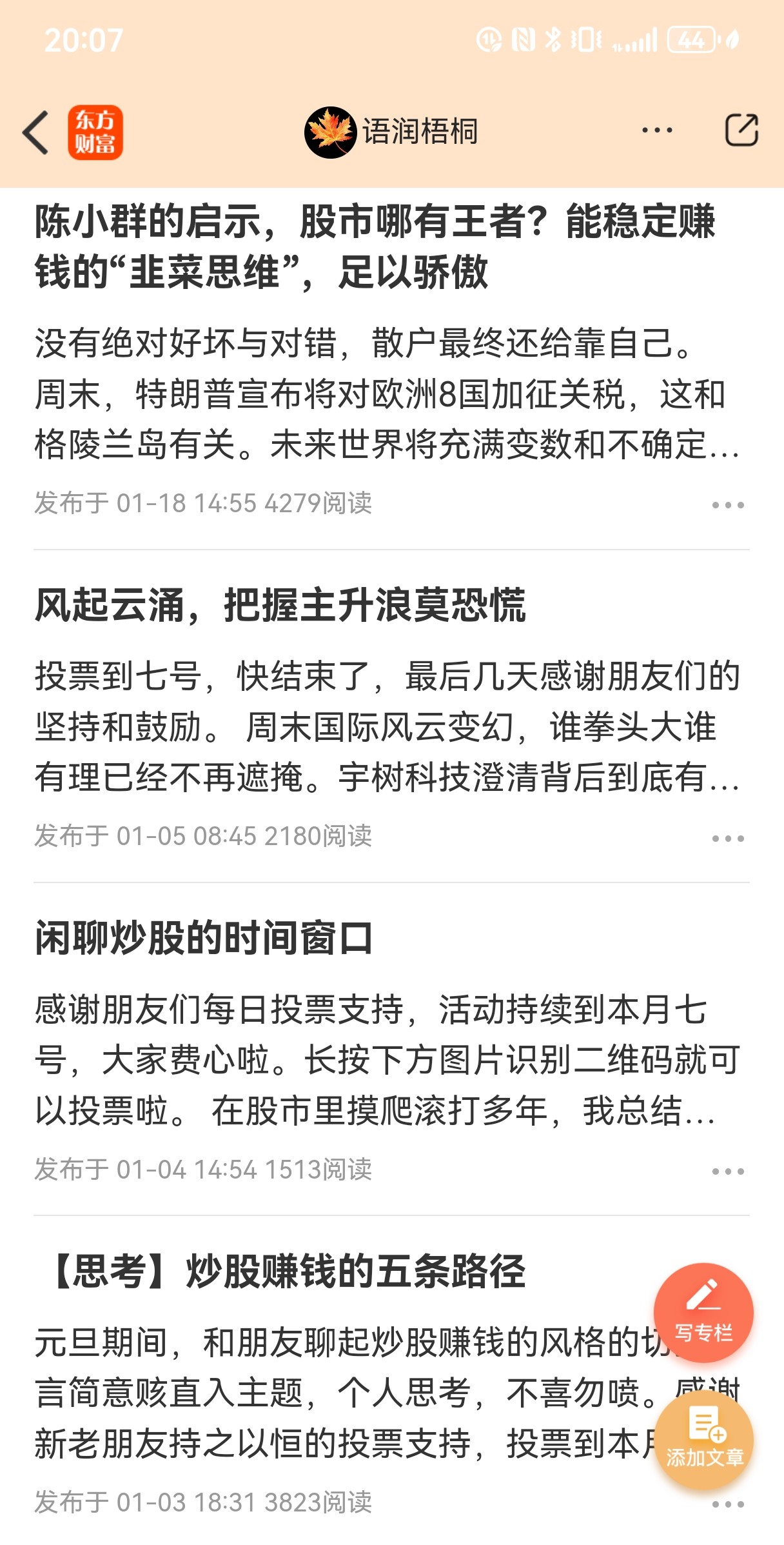 我会分享会聊天,但从不推荐股票