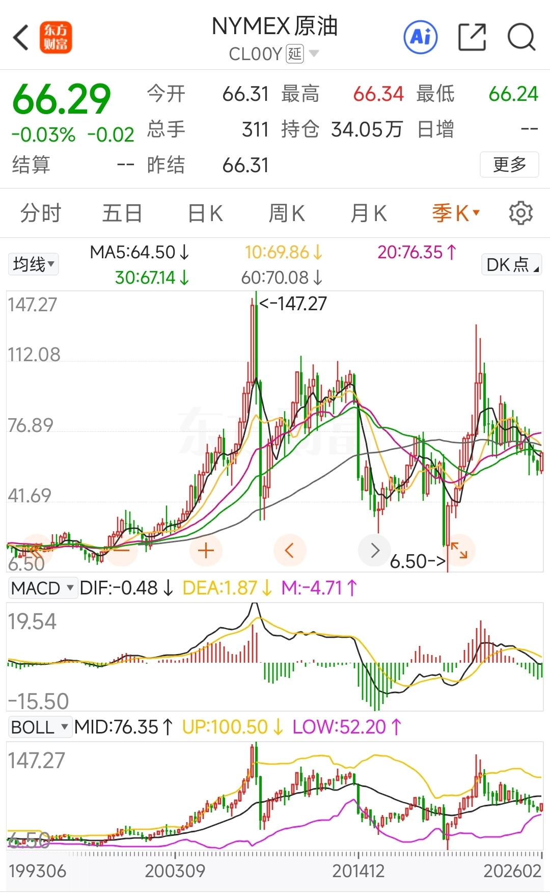 目前30年均线在 57美元附近,当前的价格仅仅比 30年均线高 15%左右。而忽略近十几年的2次异常剧烈波动(2020年上半年的新冠病毒影响下大跌和2022年上半年的俄乌之间的WAR影响下的大涨),其他十几年时间多数在 55~85之间运行。