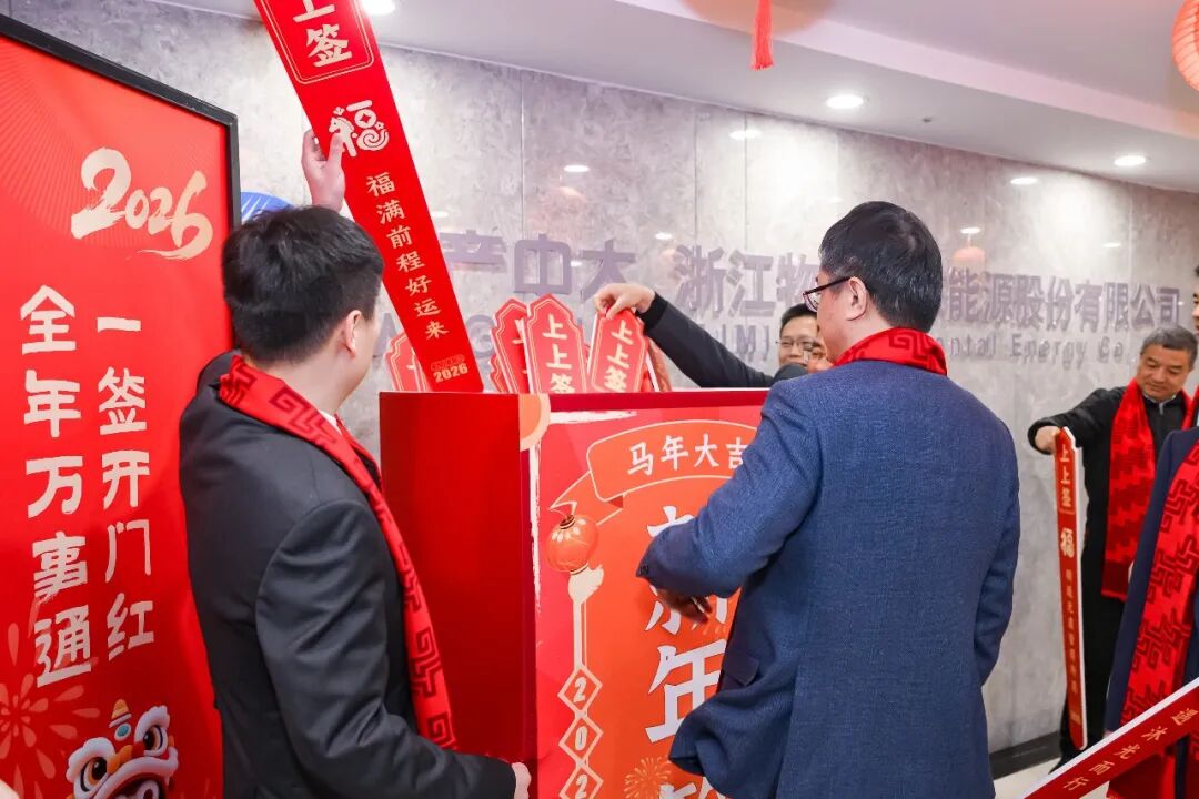 冬去春来,万象更新!开工伊始,物产环能以一场充满仪式感与奋进气的开门红仪式,拉开新一年奋斗序幕。公司领导班子与员工代表齐聚一堂,点睛寄愿、金锣启市、抽签祈福等美好形式,凝聚同心奋进的力量,为全年发展吹响冲锋号角!