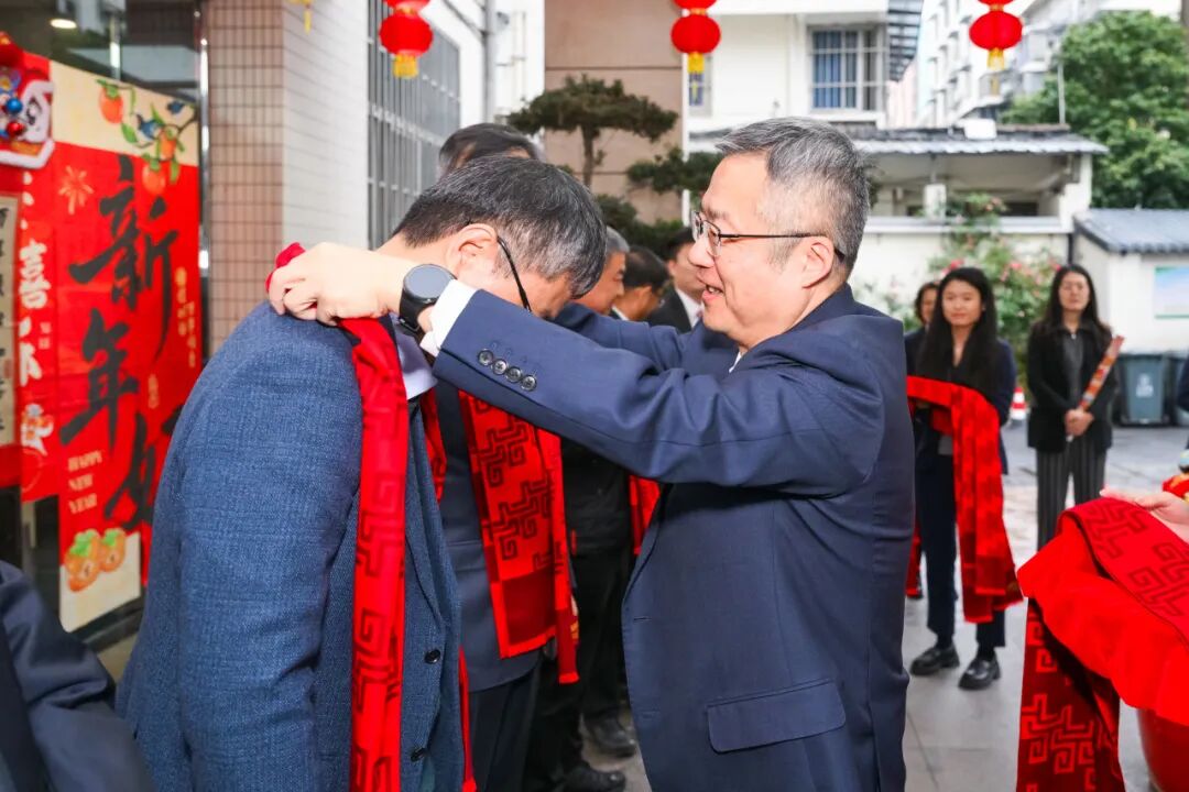 活动在欢快的音乐与热烈的掌声中拉开帷幕。物产中大集团副总裁、物产环能董事长陈明晖亲手为班子领导一一戴上红围巾。一条红围巾,寓意鸿运当头、红红火火;一次暖心佩戴,代表同心同德、聚能前行。