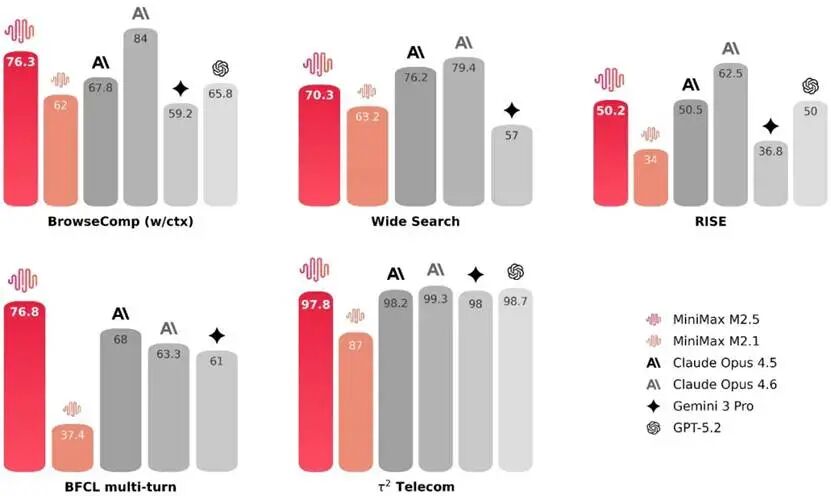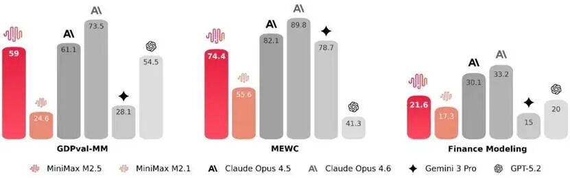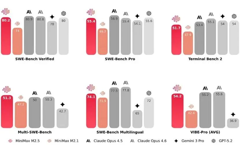 M2.5在编程、工具调用、搜索及办公等生产力场景中均展现出了显著的性能提升。