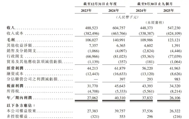 业绩方面,2023年、2024年及2025年前三季度,公司营业收入分别为4.89亿元、6.05亿元和5.47亿,利润分别为2706.2万元、4031.0万元和2610.6万元。