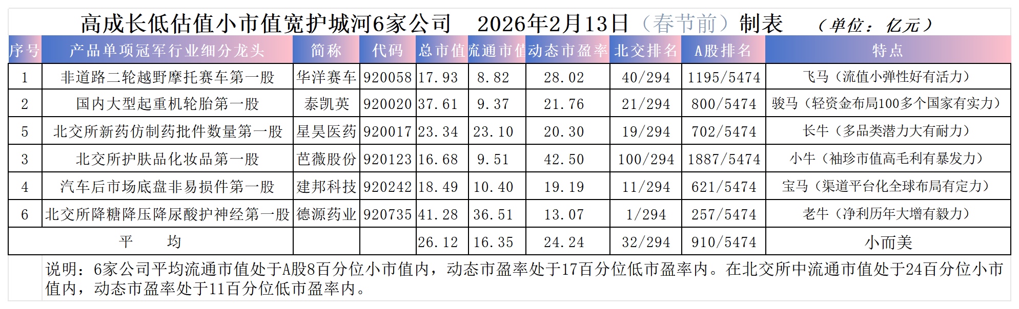 • 市值特征:6家公司均为小市值标的(总市值16.68亿-41.28亿),平均流通市值处于A股8百分位,具备“小而美”的弹性特征。
