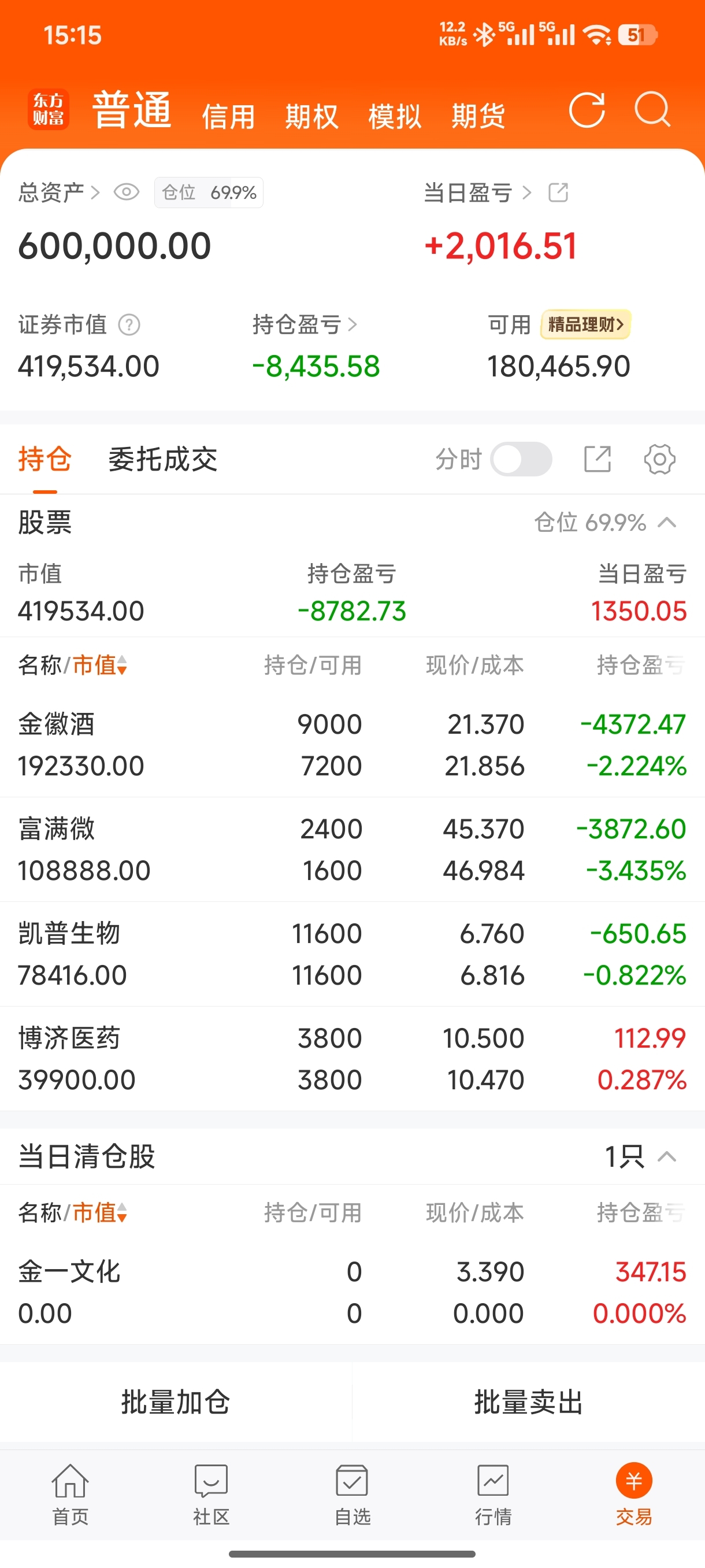 1、清仓金一文化,今天这个清仓不是基于卖点,而且整体账户风险考虑。