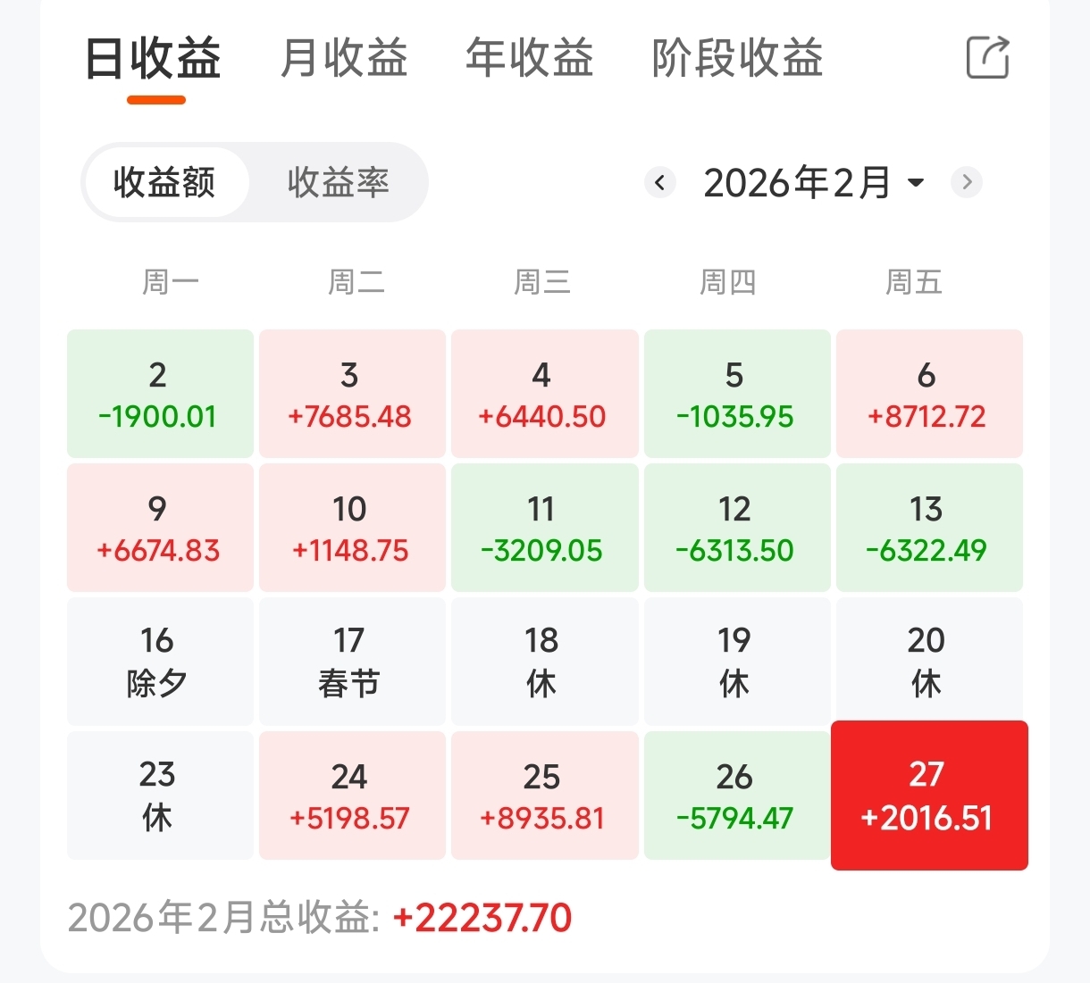 本月盈利已转出,其他没什么说的,收工,3月再战!