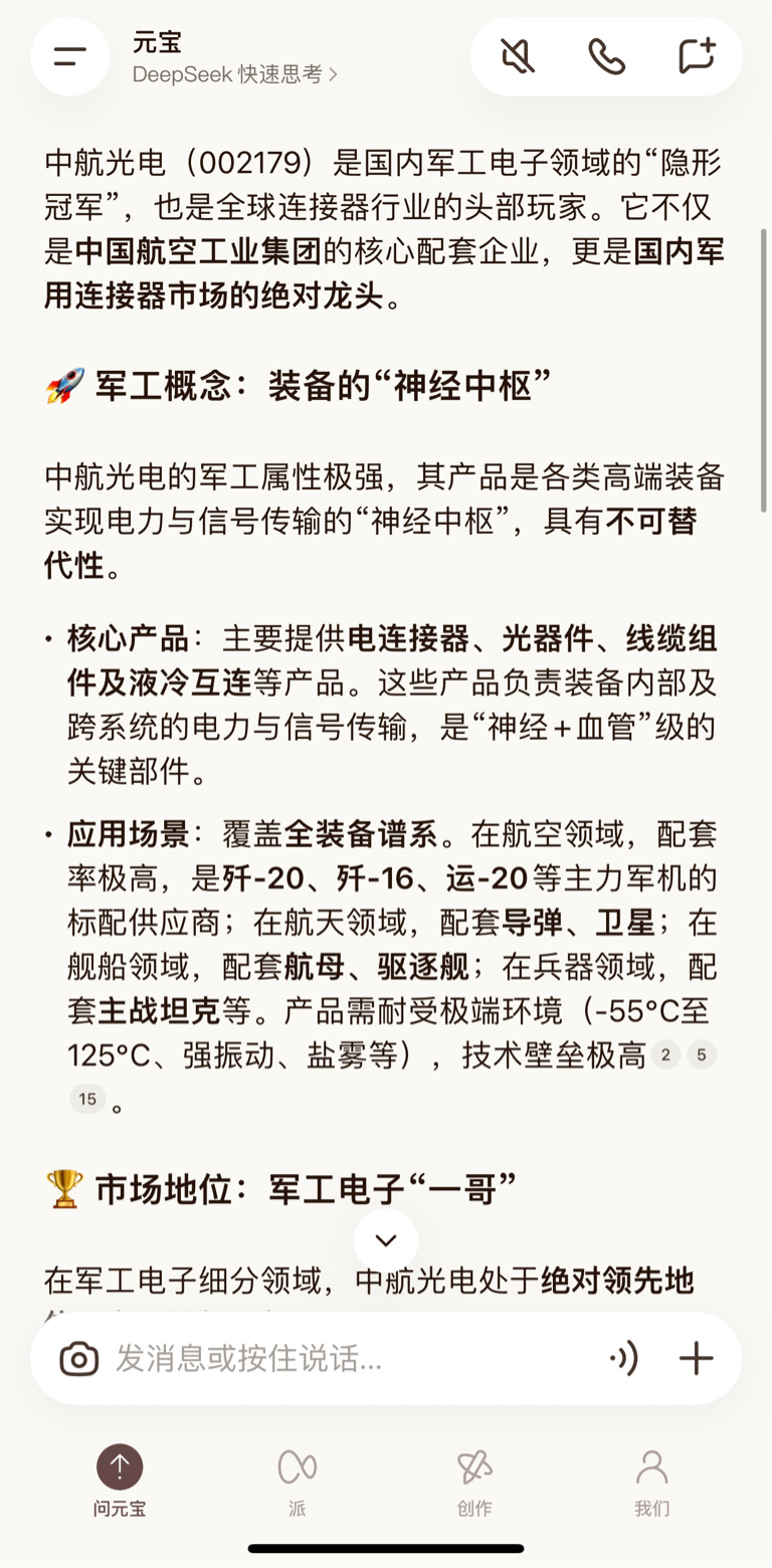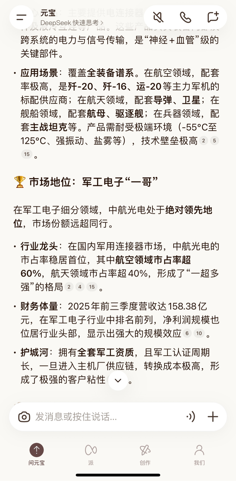 护城河:拥有全套,且军工认证周期长,一旦进入主机厂供应链,转换成本极高,形成了极强的客户粘性。