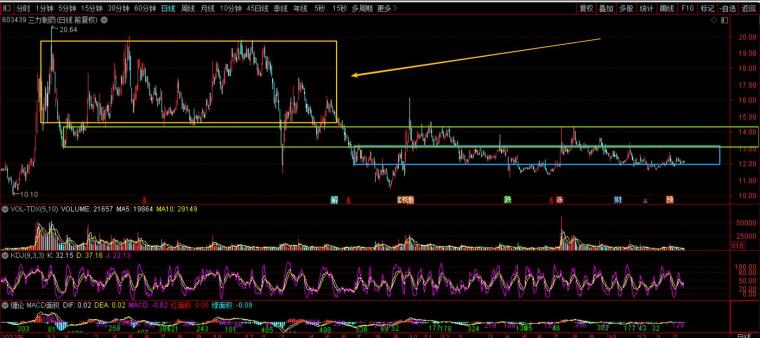 2.现在的价格属于蓝色中枢的下沿附近,相对安全的位置是12块下方(为什么一直强调中枢下沿安全,大家看橙或者绿间,只要在中枢下沿,最终都是给到解套的机会。但是中枢上沿就解套的时间可能就需要久一点,甚至乎可能没有。)