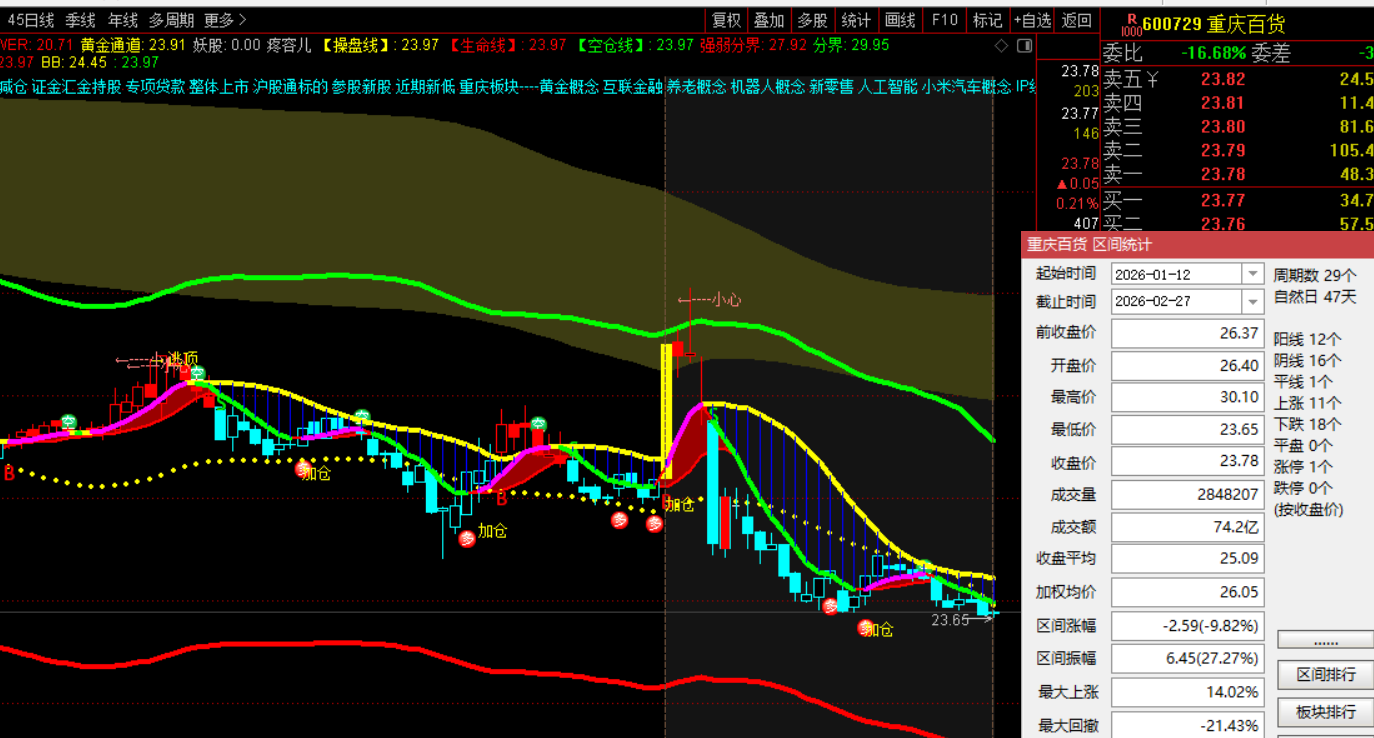 今天是 2026 年 3 月 1 日,咱们就拿重庆百货(600729)这张日线图说事儿:
