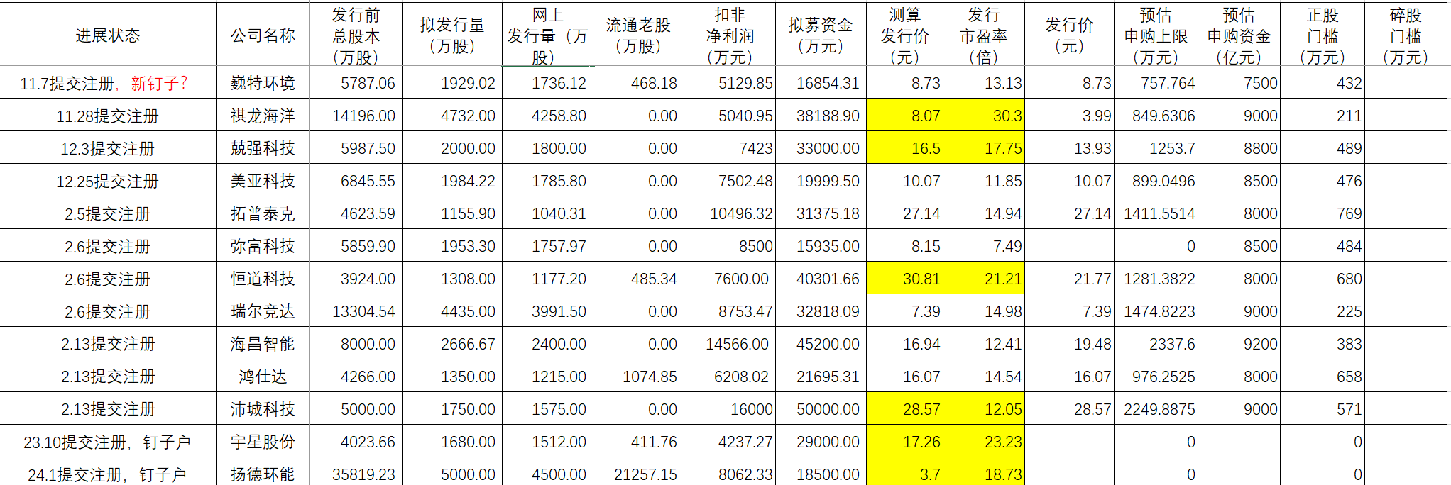 所以,已获得注册的10家公司中,普昂医疗和创达新材按目前的发行方案发行,顶格申购获配碎股都存在需要抢时间申购的可能,而族兴新材如果发行价接近7.5元左右,则顶格申购获配碎股也需要抢时间申购。