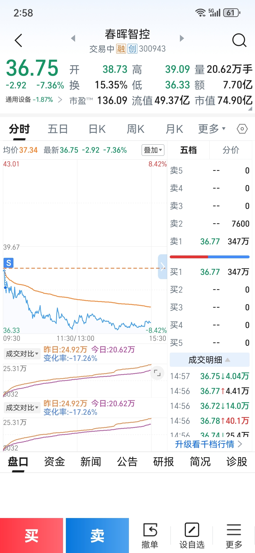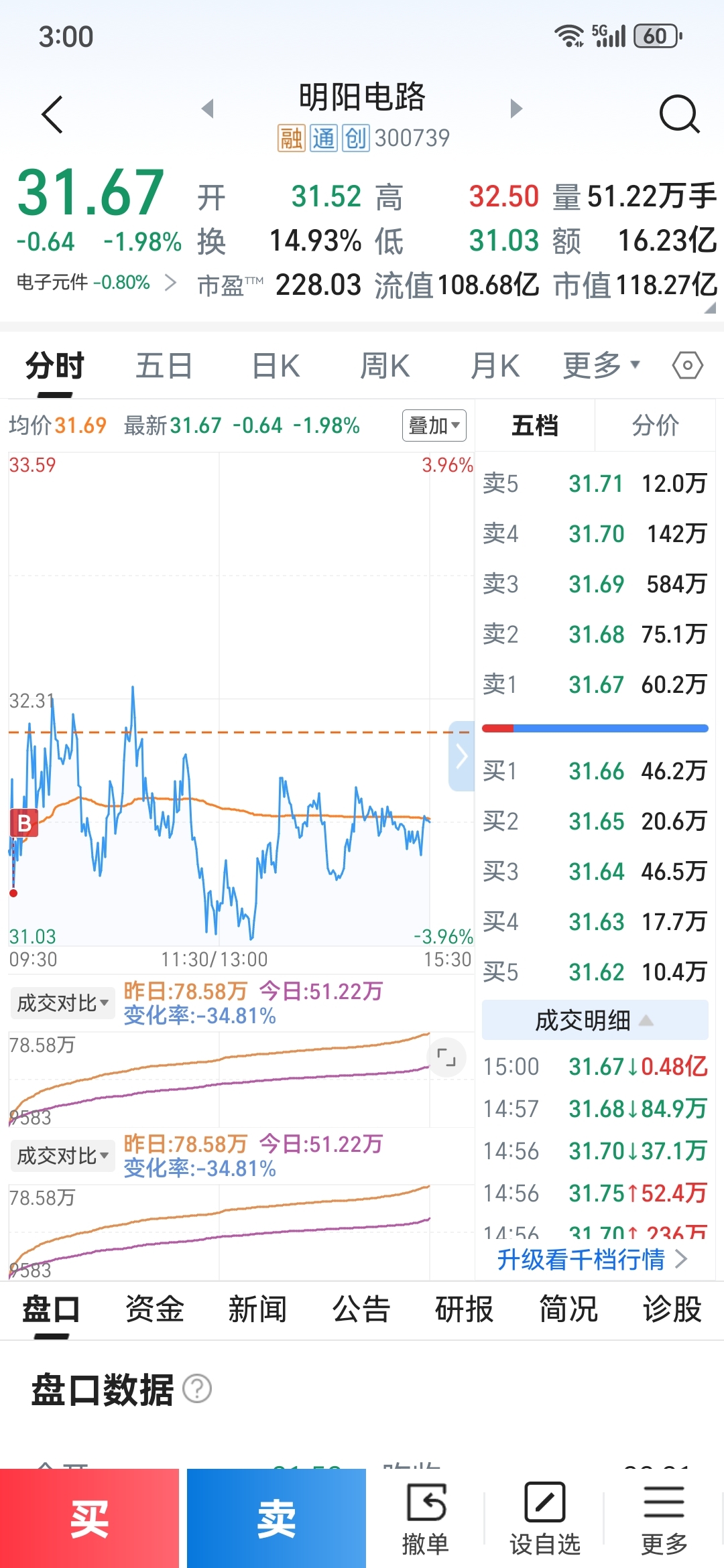 $春晖智控(SZ300943)$ $飞沃科技(SZ301232)$ $明阳电路(SZ300739)$ 上周末还是过的并不担心,还是对春晖报有一定希望,毕竟还是有燃气概念,也有商业航天,不说大赚怎么也有小肉,今天燃气首发都差点封板,结果春晖今天直接跌回五日线了,确实不及预期。早盘在-3.5左右清仓去了飞沃科技,飞沃目前占比7成,今天还是算强,连续上涨四天今天还是红盘收盘,虽然是盘中富贵,但是盘中还是开心的至少选择没有问题。今天这操作没有太大问题。早盘在-0.5左右卖了读客文化买了明阳电路,赚钱的票在趋势上要多买,今天明阳也跌回五日线了,看下明天有反包预期。以上信息为个人复盘总结,不作他人投资建议,如有据此操作,后果自行承担。