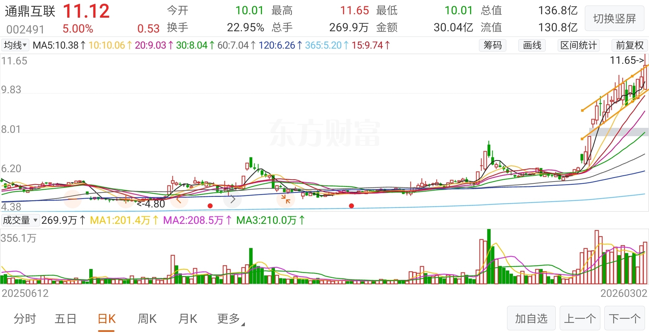 1、通鼎互联技术形态上已经突破震荡上升通道。5线顺上,均线斜率均在上升,有加速之势。温和放量,筹码结构完好。