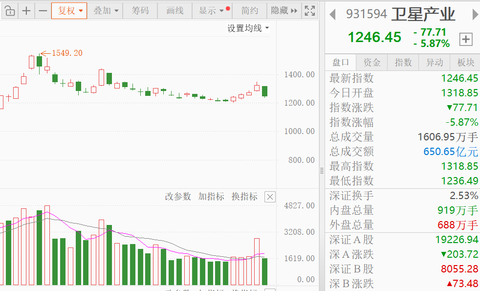 卫星-5.87%,今天是补跌昨天的诱多、包括前几天的反弹,这块我们前面一直空仓,前几天反弹时也分析日线抬头但不确定是否诱多,没想到一语成谶,今天老哈继续空仓看戏,等波更低的底部机会我再抄底。