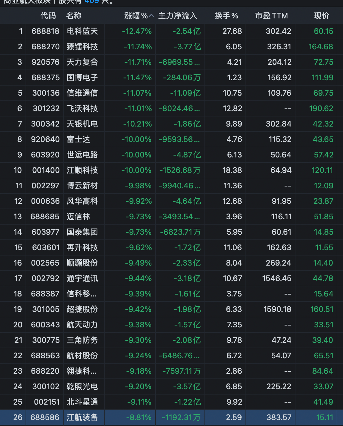 电科蓝天,暴跌12%,宇航电源绝对龙头$电科蓝天(SH688818)$