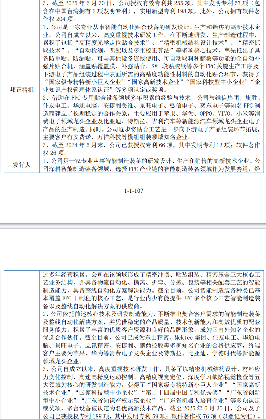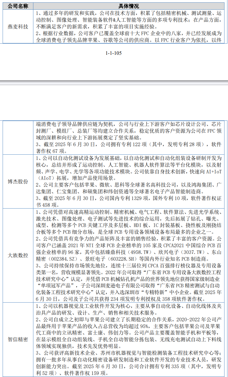锐翔智能公司主营智能装备销售,毛利率稳定,2022-2025年营业收入持续增长,净利润稳健,但经营现金流波动较大。报告期前五大客户占比高(84%-92%),第一大客户东山精密最高占比超过50%,客户集中度高主要客户需求下降或经营问题可能影响业绩。公司间接依赖苹果及其供应商,报告期内来自苹果产业链的收入占比超过50%。