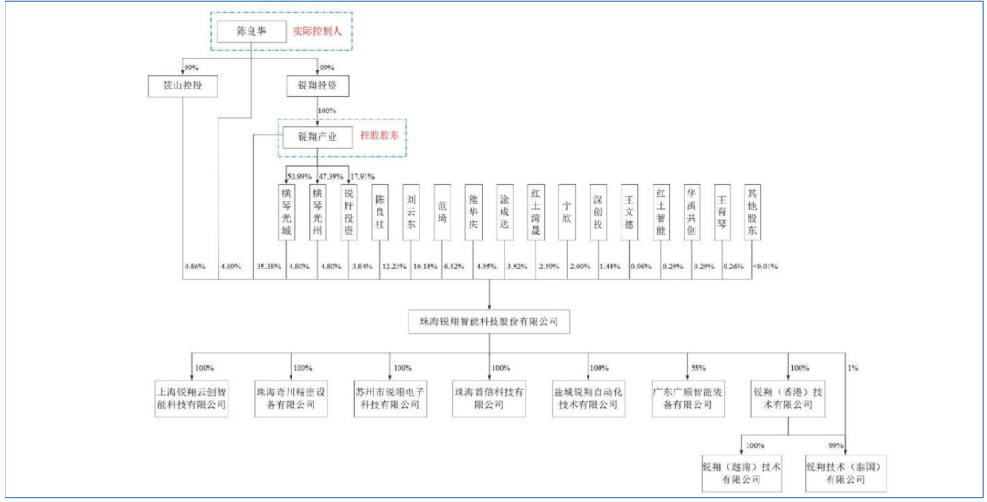 截至本招股说明书签署日,陈良华先生直接持有公司4.89%的股份,并通过锐翔产业、弦山控股、锐轩投资、横琴光州及横琴光城间接控制公司 49.68%的股份,合计控制公司54.57%的股份,为公司的实际控制人。