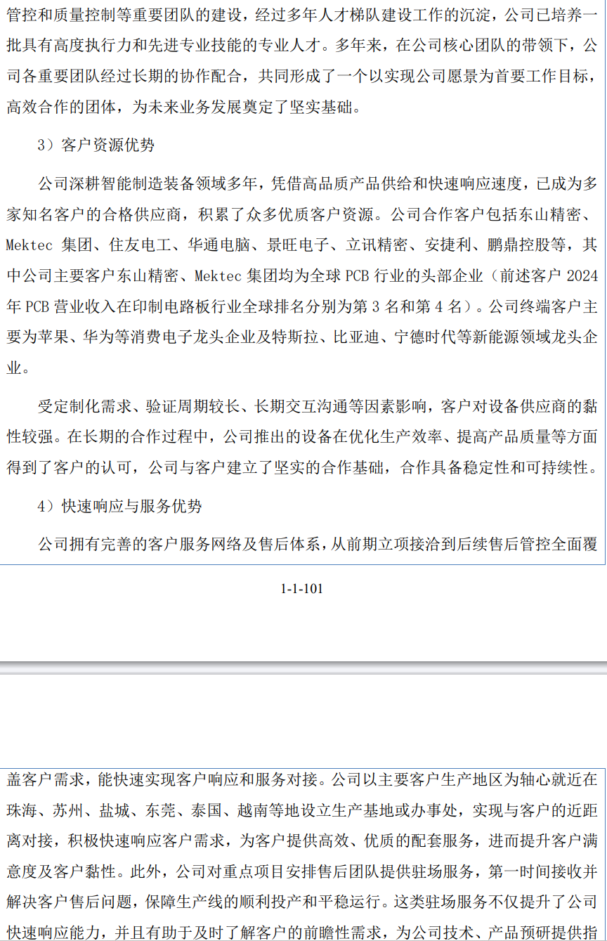 (2)与主要客户合作稳定性。根据申请文件:发行人下游主要为FPC客户。报告期内,对前五大客户的销售收入占当期主营业务收入的比例分别为90.84%、92.62%、87.92%,第一大客户东山精密占比分别为47.24%、54.41%、45.42%。报告期内,发行人对立讯精密销售金额分别为408.18万元、406.90万元、9,325.69万元,其中2024年有8,372.20万元收入确认在12月份。报告期内,公司终端客户主要为苹果、华为等消费电子企业及特斯拉、比亚迪等新能源领域企业,其中来源于苹果产业链的收入占比超50%,近年来苹果开始着手将其在境内的供应链向东南亚等地转移。