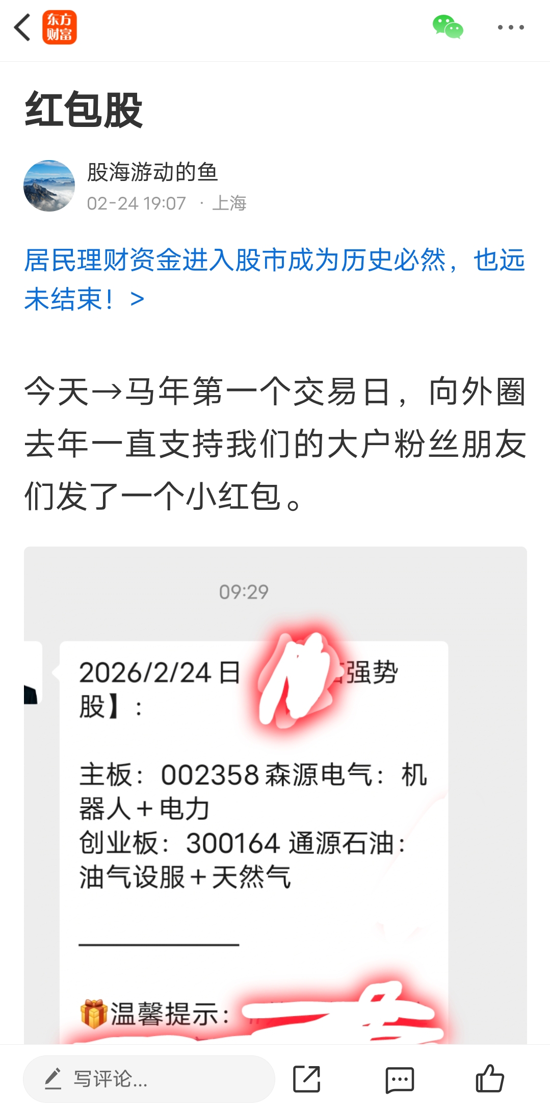 忽想起,通源石油作为马年红包帖,于2月24日开盘前一分钟,于外圈同步发在此平台