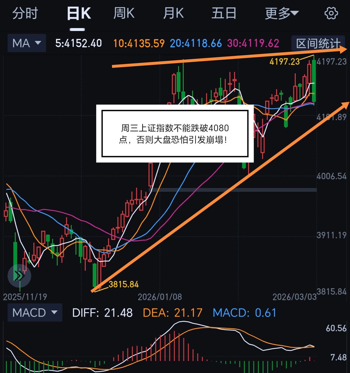 全球市场恐慌情绪进一步升温,今天韩国股市暴跌熔断,欧美股市全线大跌,德国股市跌幅接近4%,国际黄金价格出现急跌跳水,期货白银跌停、其他有色金属暴跌,唯独只有国际石油、天然气、甲醇大涨,看来明天所以热钱继续投机上述方向,我好在手中有陕天然气、富瑞特装、安通控股和保税科技,陕天然气明天大概率涨停可对冲其他股票损失。大盘短线来说恐慌情绪进一步升温,所以明天继续杀跌是大概率事件,从上证指数来看目前还是运行在收敛三角形整理之内,明天唯有不破4080点方可安全,否则将陷入踩踏式暴跌之中,两会召开期间难道就这样任意恶化下去吗?我觉得我们生活在中国确实感觉到祖国伟大,如果你生活在伊朗声明随时受到危险。早晨盘前预判突破4190点完全符合预期,但个股跌的惨不忍睹确实超乎预料,尤其自己预判春季行情启动完全被打脸,今天操作的三只股票$陕天然气(SZ002267)$涨停,$富瑞特装(SZ300228)$上涨15.82%,$安通控股(SH600179)$上涨4.55%。