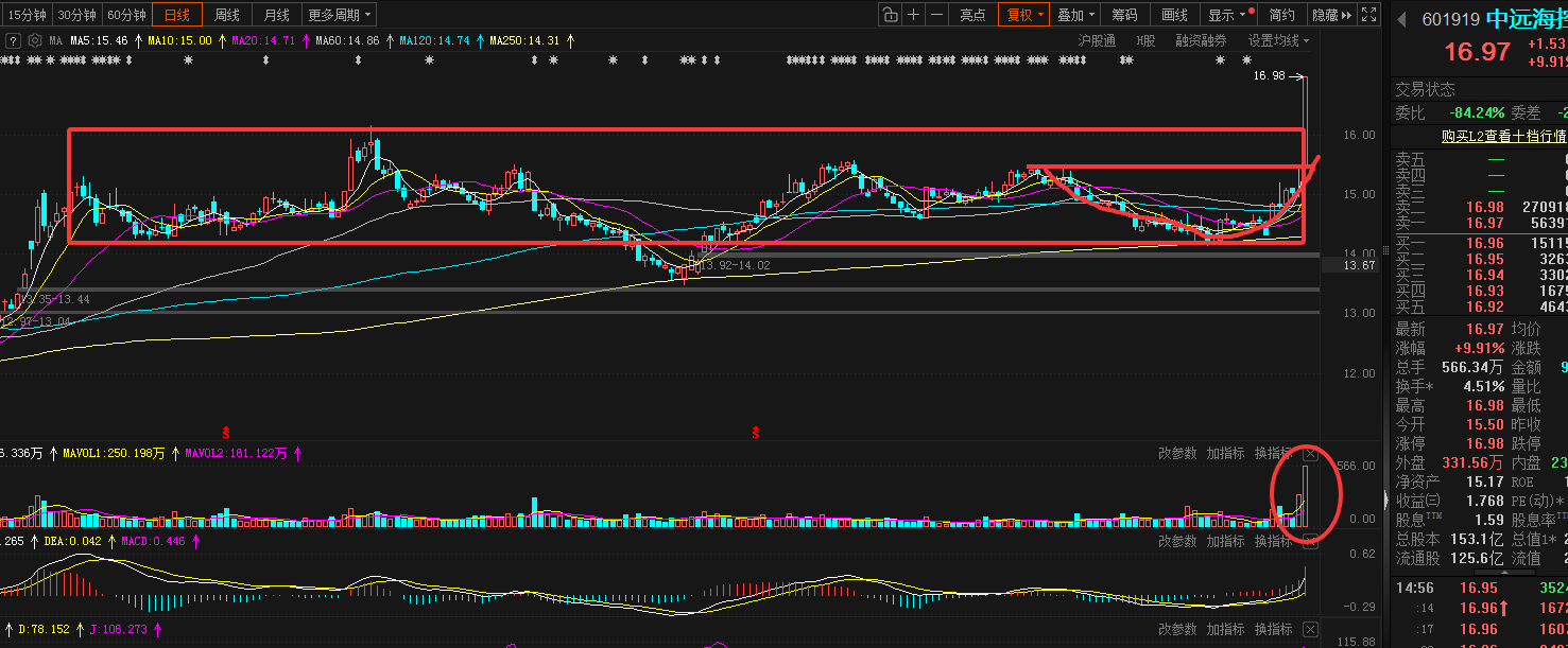 技术上,股价经过近一年的横盘震荡后,近期在年线位置企稳,且量能已经来到地量。这也就意味内盘的浮动筹码大幅减少。而上周在均线支撑下给到放量中阳突破,这可视为调整结束信号出现。同时近两个月的震荡,形态上走出圆弧底。看涨预期也会偏强。前两日连续给到倍量大涨,股价也是创出新高,这也就意味高位的卖压得到释放。如此一来后续在冲突影响下,只需注意出货信号即可。