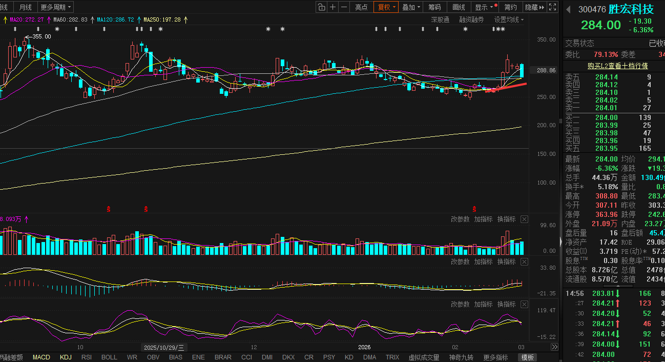 胜宏科技,周一CPO整体表现非常好,这是市场对AI在这次老M发动进攻取得表现的主要逻辑。结果炒作一天就被整体恐慌情绪打压下来。不过预期在,短期回调问题也就不大。而且AI方面的安全问题后续也会大幅提升,国产替代的必要性会持续增强。