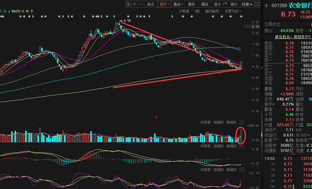 宏观上,2026年第一季度实现归母净利润715.54亿元,同比增长1.75%,在行业净息差持续承压背景下,成为四大行中为数不多保持盈利正增长的标杆。且每年两次分红,股息率相对也偏大。如此在市场动荡的情况下,大概率会迎来中长期纸金关注。