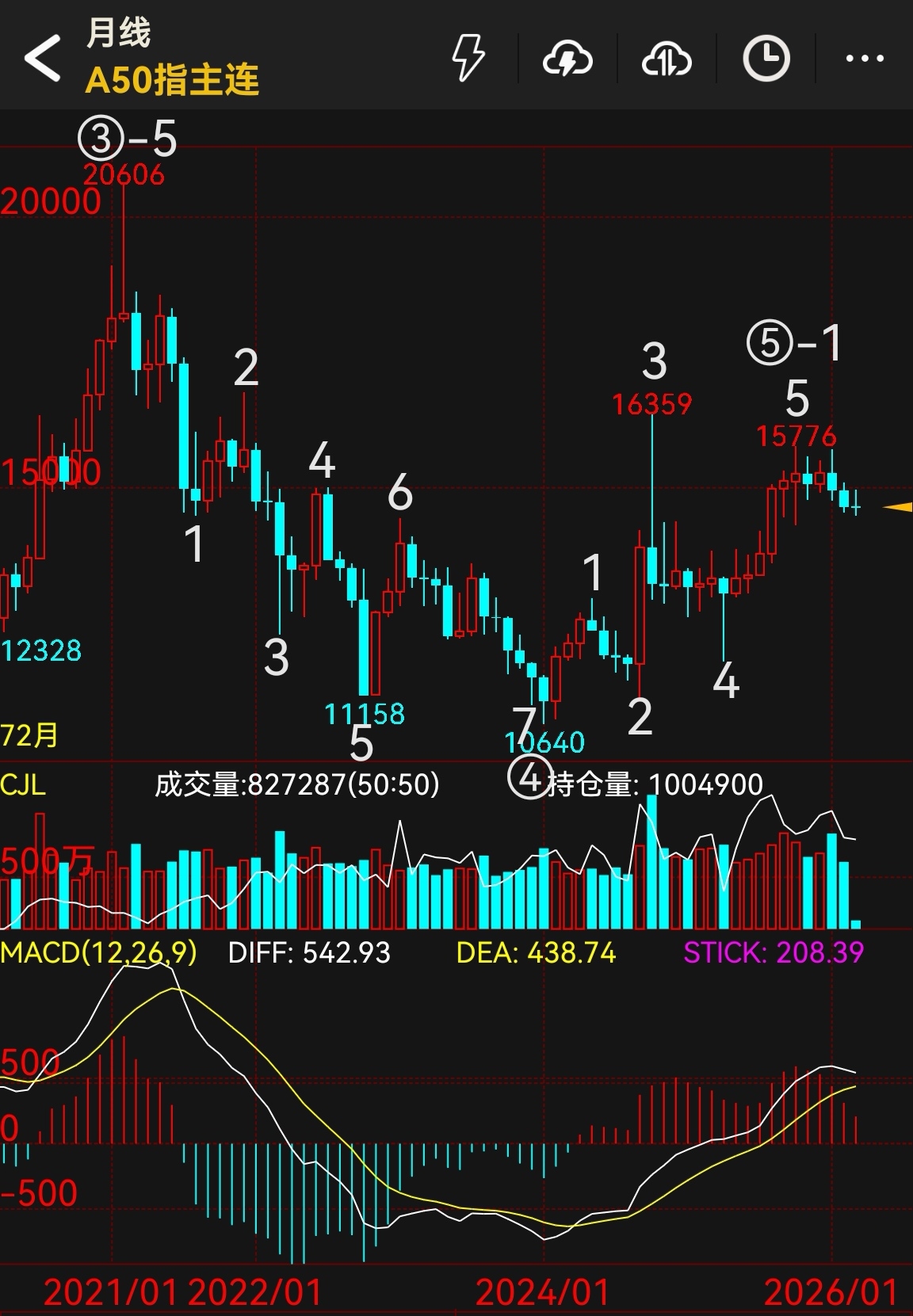 A50期指主连,月K,20260303