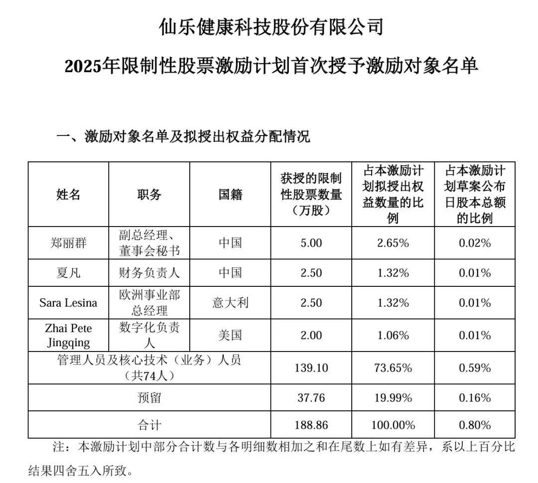 值得一提的是,2025年限制性股票激励计划首次授予拟激励名单中,公司原财务负责人夏凡计划将被授予2.5万股。2025年半年报中披露其持有的限制性股票已达6.63万股,但2025年7月18日公司却披露其因个人原因辞去财务负责人职务。辞职后,夏凡已不再出现在后续的激励计划相关名单中。