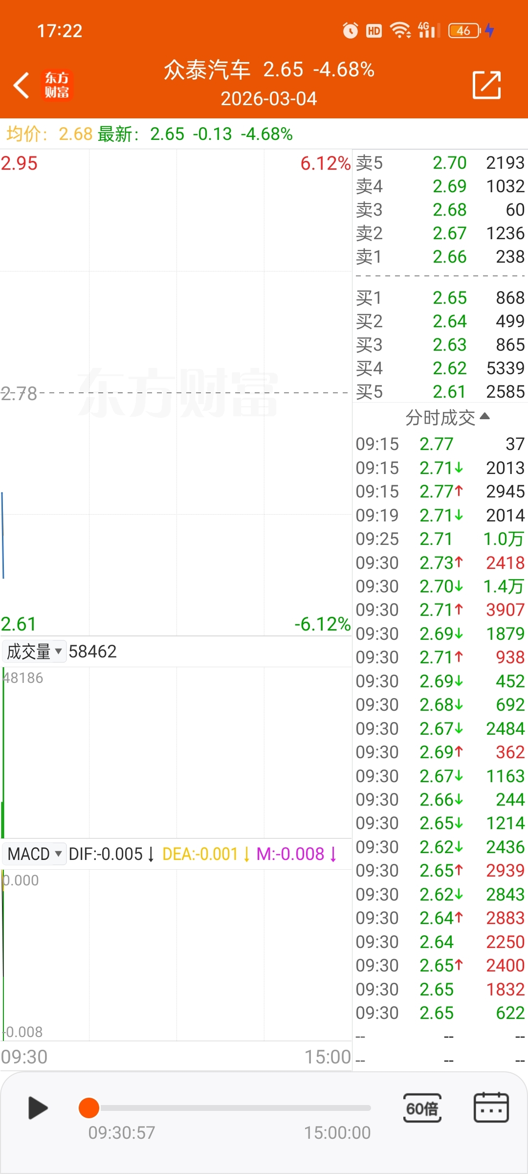 $众泰汽车(SZ000980)$ 主力量化资金左手倒右手,虚晃一枪2.61就1秒钟成交几百股 ,近期2.61应该是底部了,急跌拉升,这几天结合伊战下杀确实有点猛,3天从3.08跌到2.61,(3.08-2.61)/3.08=0.1525974026,近15%跌幅,今天抄底的目标做T在2.95,估计接下去在3块下方震荡了,3块加仓的也被套了10个点,韭皇重组梦彻底破碎了,这几天不知道AD云淡风轻还有没有还在意![捂脸 [捂脸]](http://gbfek.dfcfw.com/face/emot_default_28x28/emot42.png)