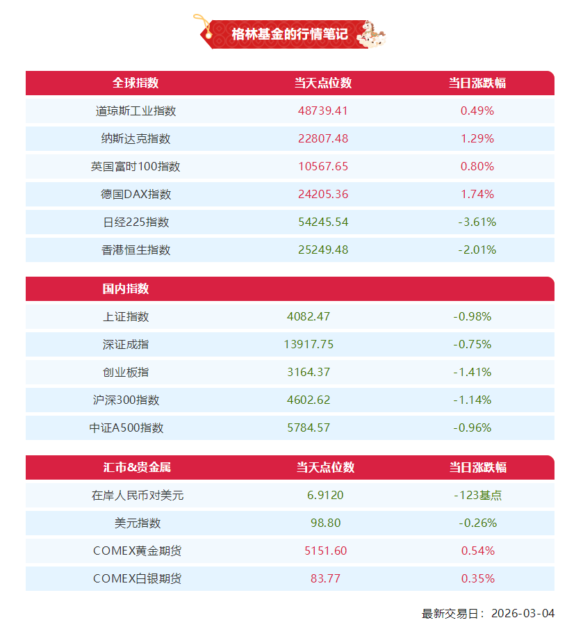 展望后市,地缘冲突等外部不确定性因素仍将扰动市场,指数短期或面临阶段性压力。但国内政策与经济基本面修复的中期逻辑未变,随着不确定性逐步消化,市场焦点有望重归国内复苏节奏。短期宜控制仓位,重点把握高景气硬科技与基本面修复的轮动机会。