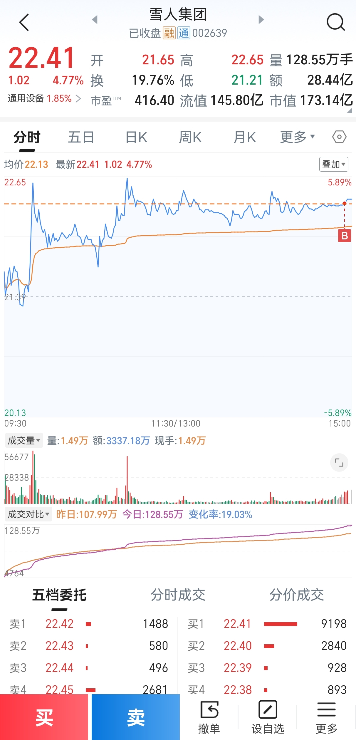 节前将短线清仓,过完年一直在观察,大佬登原油贵金属我是不会买的,所以一直等,等到原油逆转,航天发展带头启动才开始开仓,22.35先买雪人集团,把前年未完成的操作先做完。